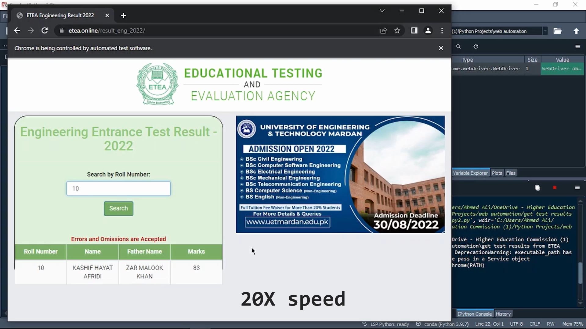 A Python automation script using Selenium that extracts and compiles ETEA result scores from the official website.